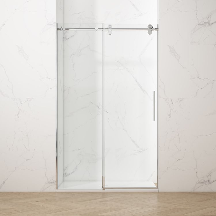 أباب دش بدون إطارمصنوعة من زجاج مقسّى سميك دون الحاجة إلى إطار داعم. توفر هذه الأبواب مظهرًا عصريًا مفتوحًا، مما يُحسّن المظهر العام للحمام. تصميمها البسيط يُقلل من الفوضى البصرية ويسمح بمرور المزيد من الضوء الطبيعي. إليك مثال يمكنك الرجوع إليه: